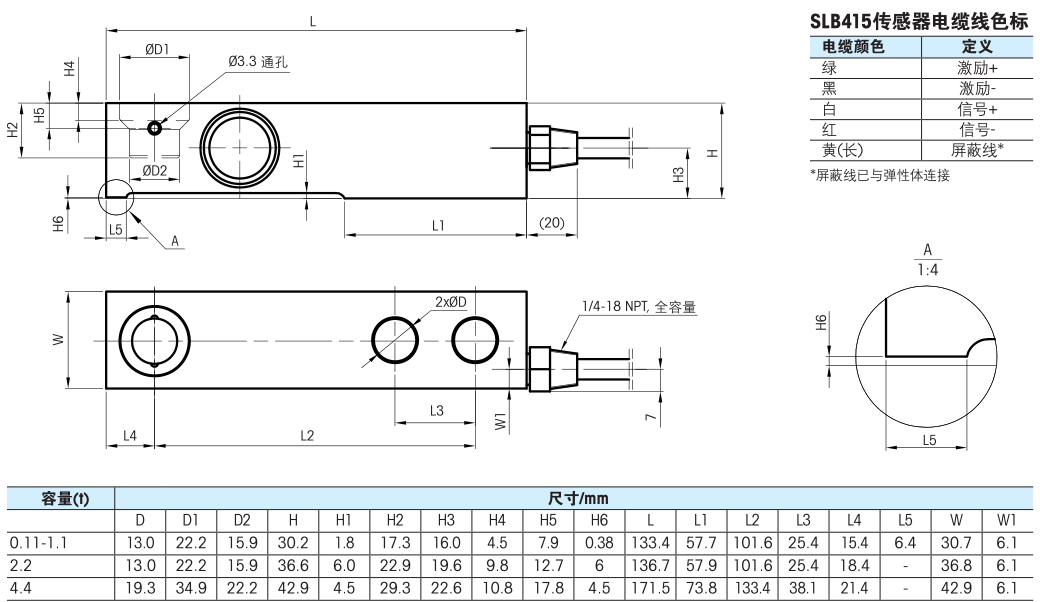 稱重傳感器相關(guān)型號(hào):SL415-110kg,SL415-220kg,SL415-550kg,SL415-1100kg,SL415-2200KG,SL415-4400kg,SL415-1.1T,SL415-2.2T,SL415-4.4T。
