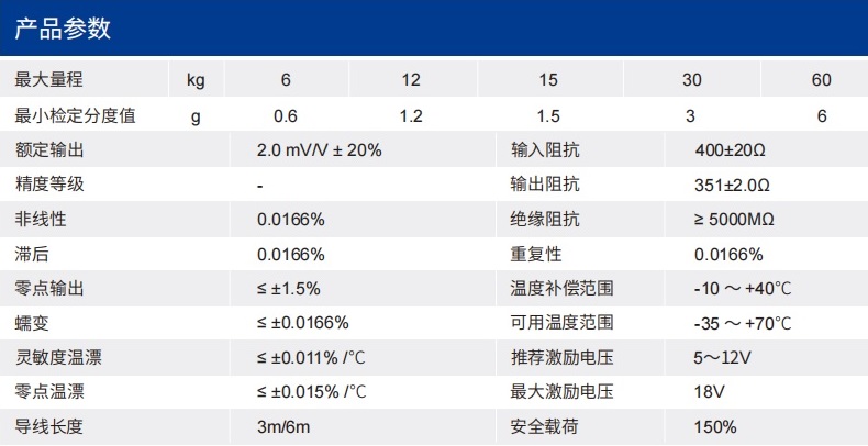 四、LZS30稱重傳感器技術(shù)參數(shù)