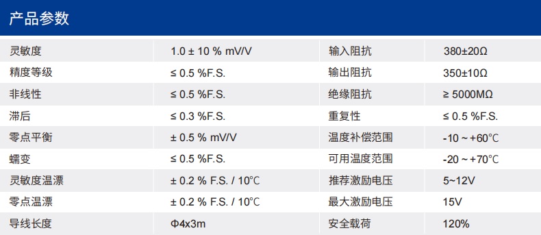 四、DZXF稱重傳感器技術(shù)參數(shù)