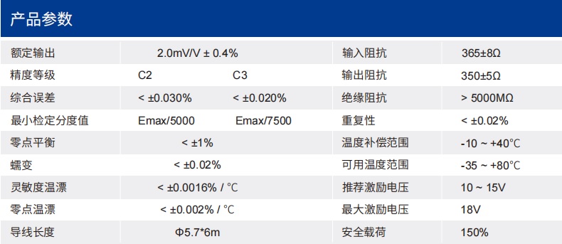 四、DZXH-C稱重傳感器技術(shù)參數(shù)
