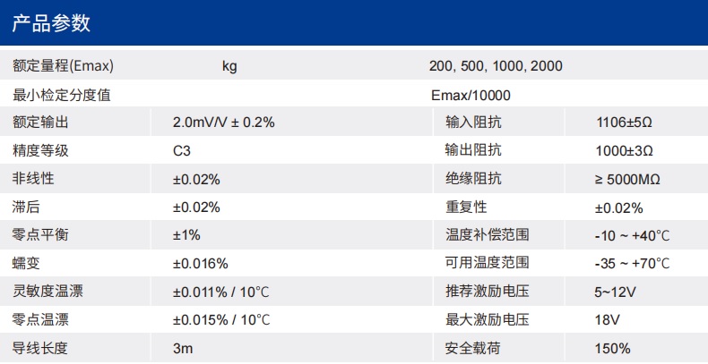 四、SLSB稱重傳感器技術(shù)參數(shù)