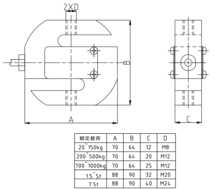 ★量程可選:20kg,30kg,50kg,75kg,100kg,150kg,200kg,250kg,300kg,500kg,700kg,750kg;1t,1.5t,2t,3t,5t,7.5t。