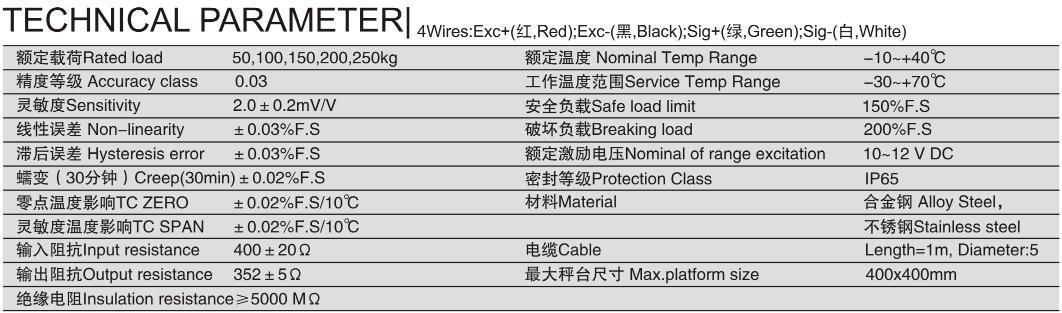 柯力ILK系列稱重傳感器技術(shù)參數(shù)