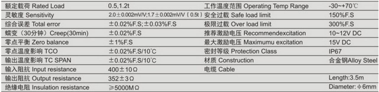 柯力SBB系列稱重傳感器技術(shù)參數(shù)