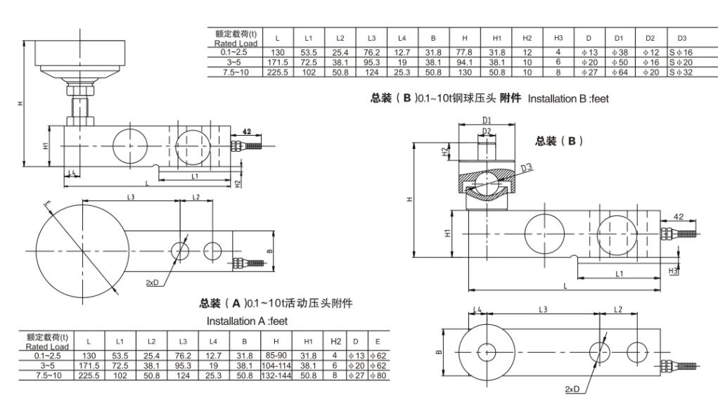 柯力SQB-A系列稱重傳感器安裝尺寸