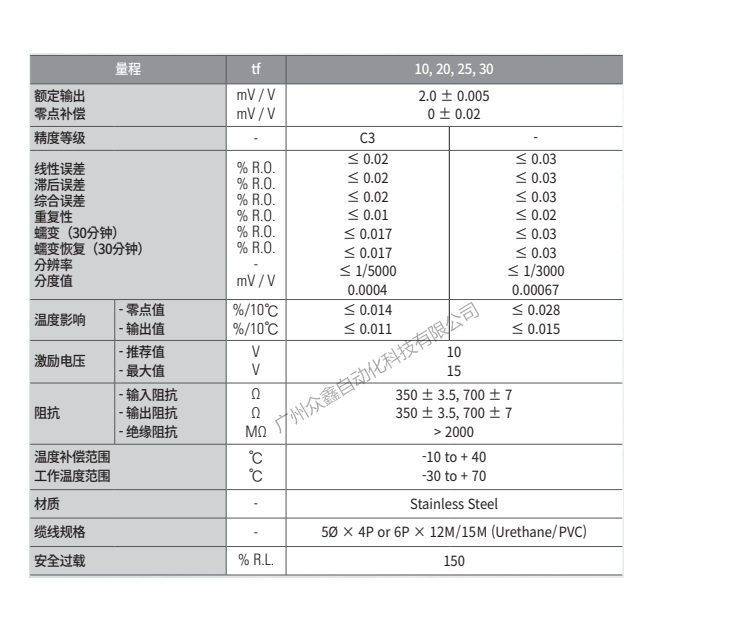 五、韓國凱士CAS品牌 WBKC-30T稱重傳感器技術(shù)參數(shù)