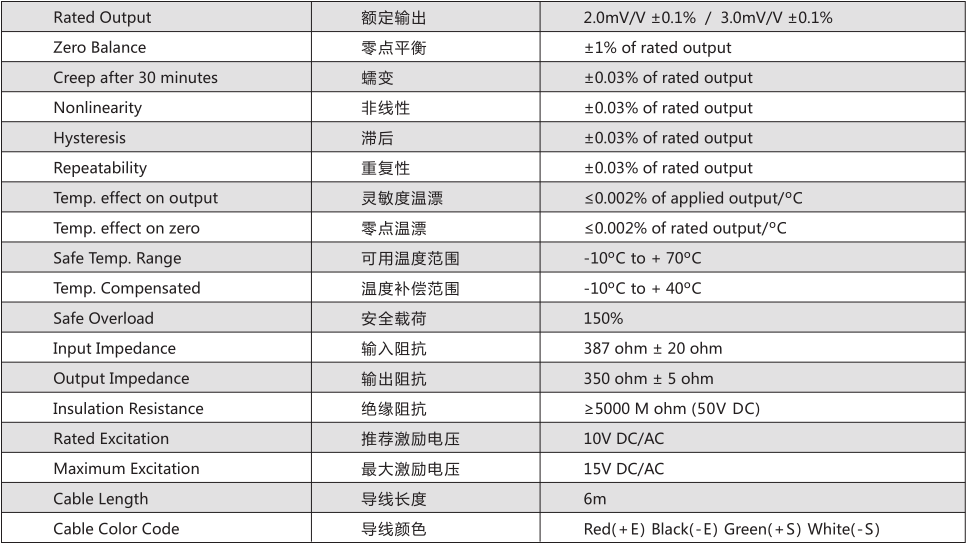 Transcell傳力BSA系列技術(shù)參數(shù)