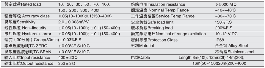 稱重傳感器相關型號: 1- ZSC-10t, 1- ZSC-20t, 1- ZSC-30t, 1- ZSC-50t, 1- ZSC-70t, 1- ZSC-100t, 1- ZSC-150t, 1- ZSC-200t, 1- ZSC-300t, 1- ZSC-400t