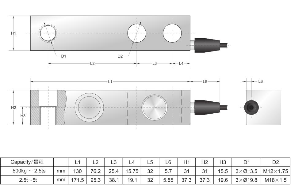 ▲量程可選:500kg,750kg,1000kg,1500kg,2000kg,2500kg,5000kg