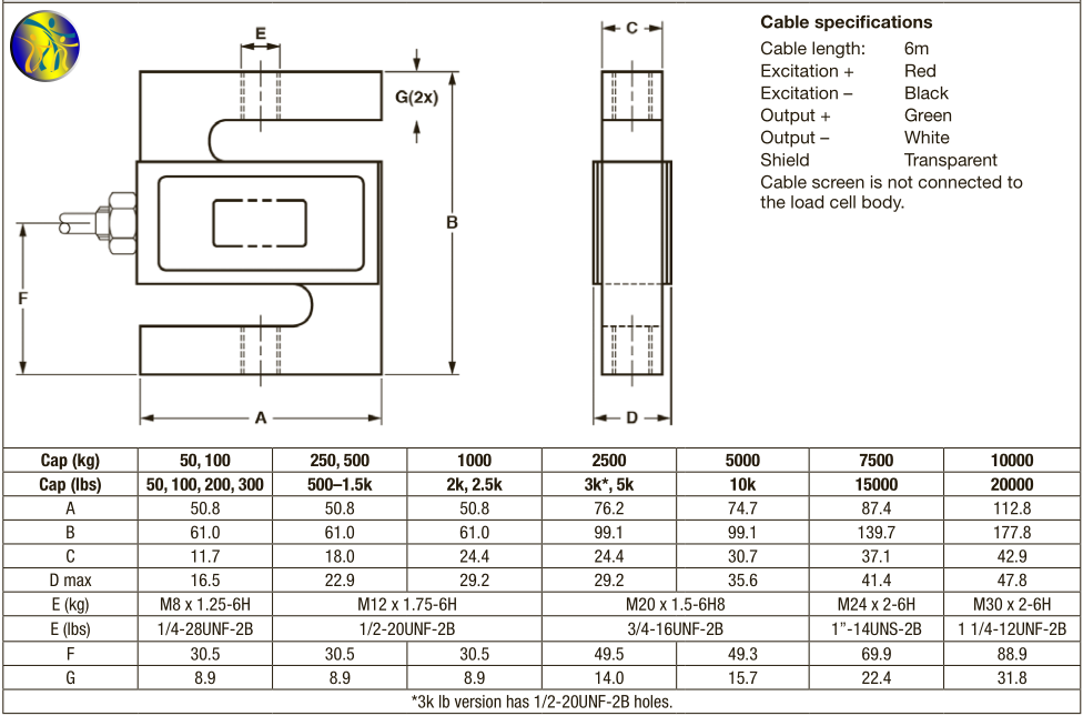 量程范圍:50kg~10000kg(50lbs~20klbs)