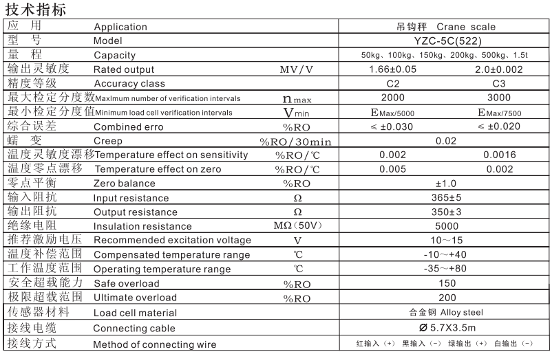 YZC-522-50kg, YZC-522-100kg, YZC-522-150kg, YZC-522-200kg, YZC-522-500kg, YZC-522-1.5t
