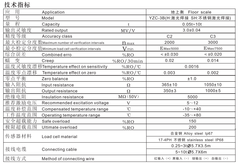 廣州電測(cè)傳感器YZC-320系列產(chǎn)品參數(shù):