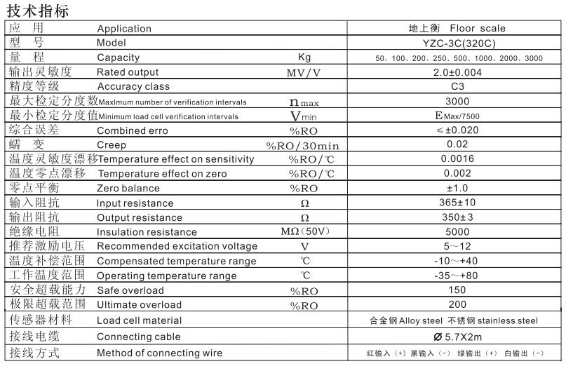 廣州電測(cè)傳感器YZC-320C系列產(chǎn)品參數(shù):