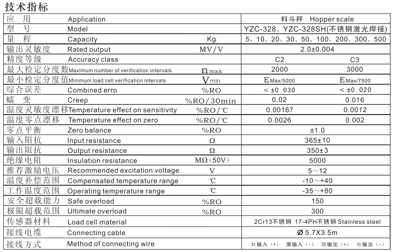 廣州電測傳感器YZC-328系列產(chǎn)品參數(shù):