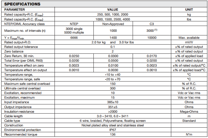 3410-250kg, 3410-500kg, 3410-1000kg, 3410-2000kg