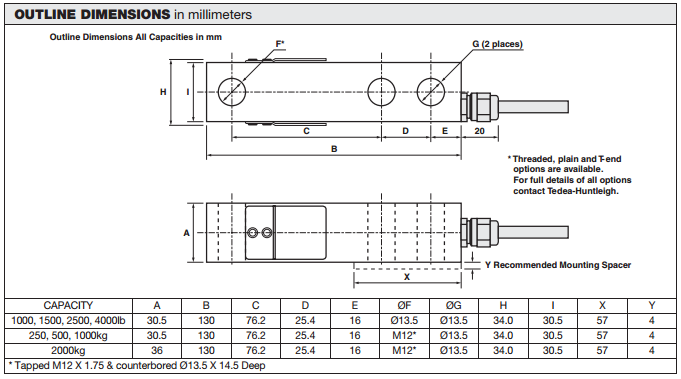 美國 Tedea傳感器3410系列所有量程如下: