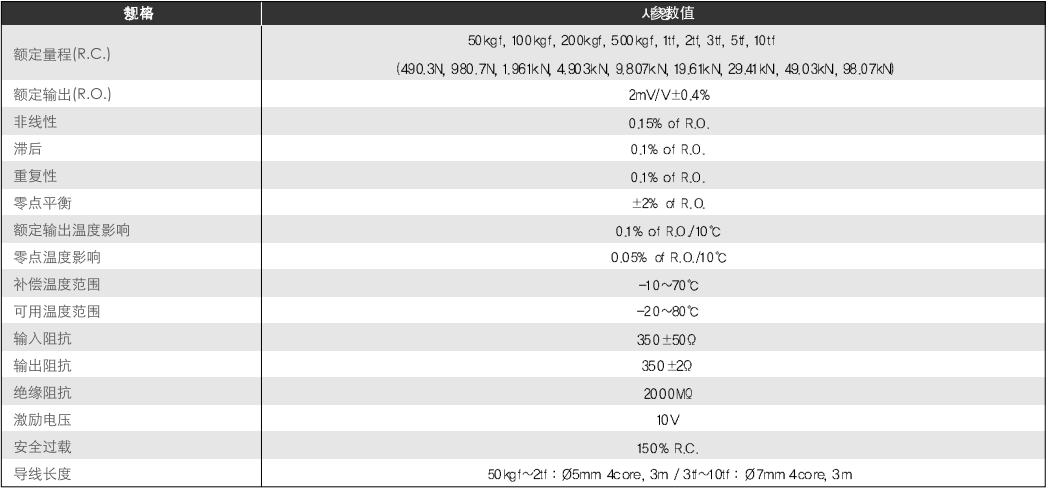稱重傳感器相關(guān)型號(hào):CM-50kgf, CM-100kgf, CM-200kgf CM-500kgf; CM-1tf, CM-2tf, CM-5tf , CM-10tf。