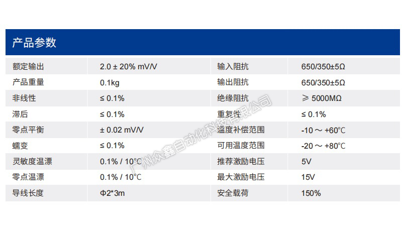 四、STX-500N微型力傳感器技術(shù)參數(shù)