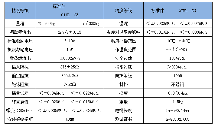 額定量程:75,100,200,300Kg