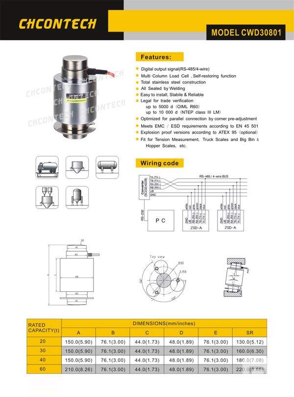 廣州眾鑫自動(dòng)化科技有限公司】專業(yè)供應(yīng)美國(guó)chcontech CWD30801系列稱重傳感器,【CWD30801柱式傳感器】CWD30801-20t~100t_