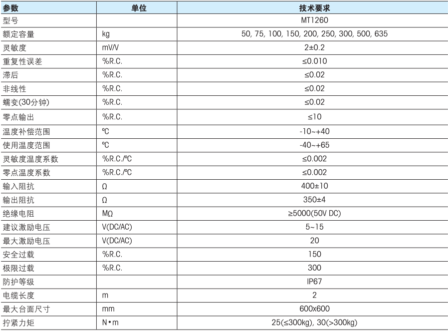 稱重傳感器相關(guān)型號:MT1260-50kg,MT1260-75kg,MT1260-100kg,MT1260-200kg,MT1260-250kg,MT1260-300kg,MT1260-500kg,MT1260-635kg