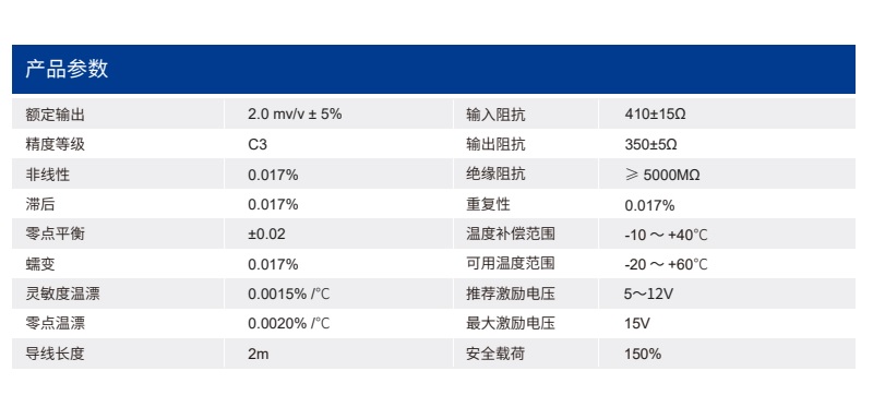 四、LZX40稱重傳感器技術(shù)參數(shù)