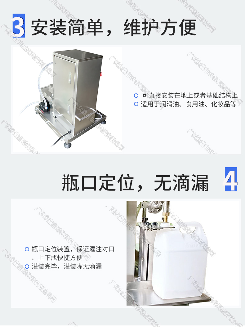 純電泵直接抽料,不用壓縮空氣,變頻器控制泵的流速、先快后慢,稱重式灌裝。機器主體采用不銹鋼材質,灌裝容量1-5L,分裝為主。此型號機器可灌注大部分高低粘度,無顆粒、非爆性液體,廣泛應用于潤滑油、食用油、玻璃水、洗潔精、油墨、酒水、聚氨酯、化妝品日化等行業(yè)。