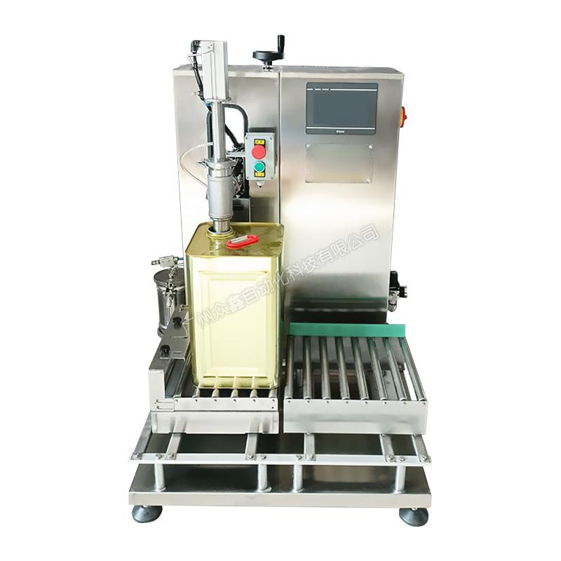 物料自流到灌裝機(jī)的進(jìn)口管道,氣動(dòng)雙閥門控制灌裝流速,先快后慢,稱重式灌裝,灌裝完畢,灌裝嘴不滴漏。機(jī)器主體采用不銹鋼材質(zhì)。灌裝容量10-25L。此型號(hào)可灌注大部分高低粘度,無(wú)顆粒、非爆性液體,廣泛應(yīng)用于潤(rùn)滑油,液壓油,防凍液,玻璃水,聚氨酯,化妝品日化等行業(yè)。