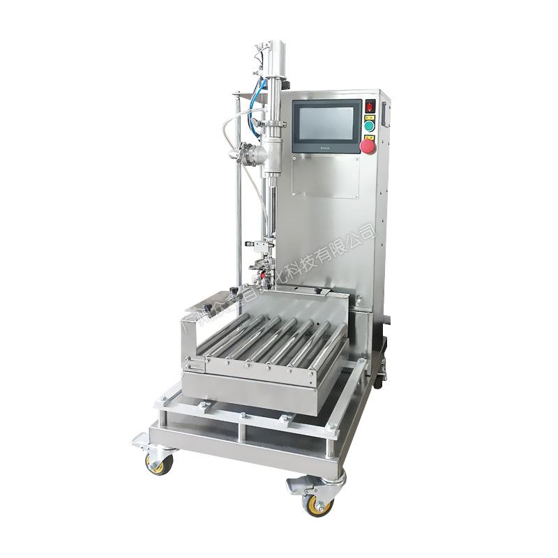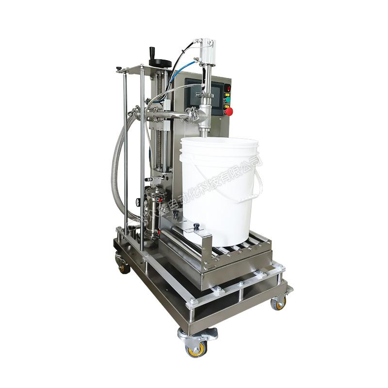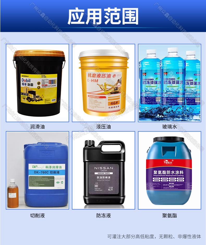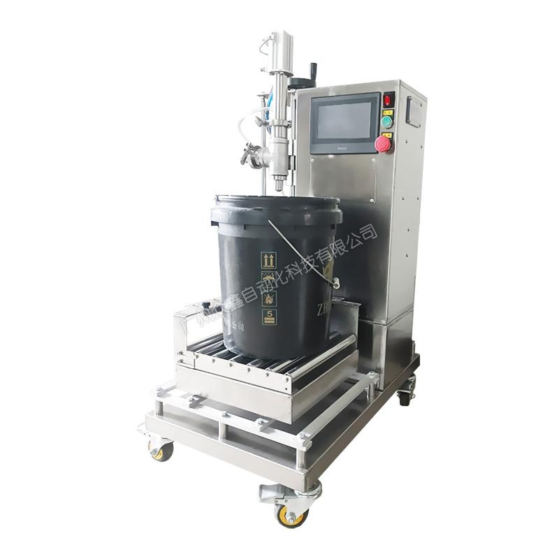 泵送料到灌裝機(jī)的進(jìn)口管道,變頻器控制泵的流速,先快后慢,稱(chēng)重式灌裝。機(jī)器主體采用不銹鋼材質(zhì),灌裝容量1-25L。此型號(hào)機(jī)器可灌注大部分高低粘度,無(wú)顆粒、非爆性液體,廣泛應(yīng)用于潤(rùn)滑油、液壓油、切削液、防凍液、玻:璃水、聚氨酯、化妝品日化等行業(yè)。