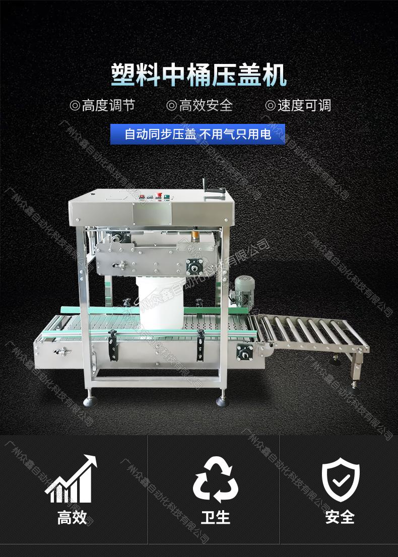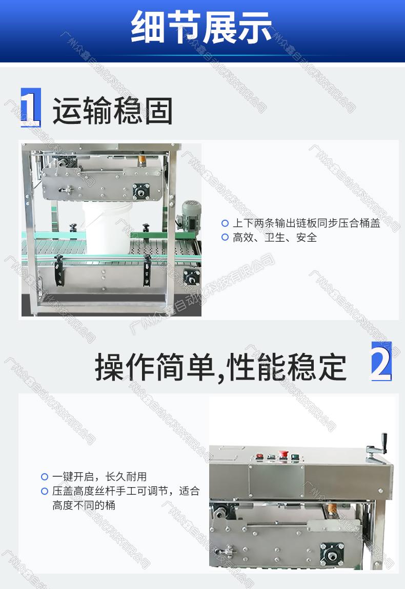 上下兩條輸送鏈板同步壓合桶蓋,斜角漸進(jìn)壓蓋,桶內(nèi)多余空氣排出,避免桶內(nèi)鼓氣。自動(dòng)化生產(chǎn),無需人為操作,降低用人成本,提高生產(chǎn)效率。