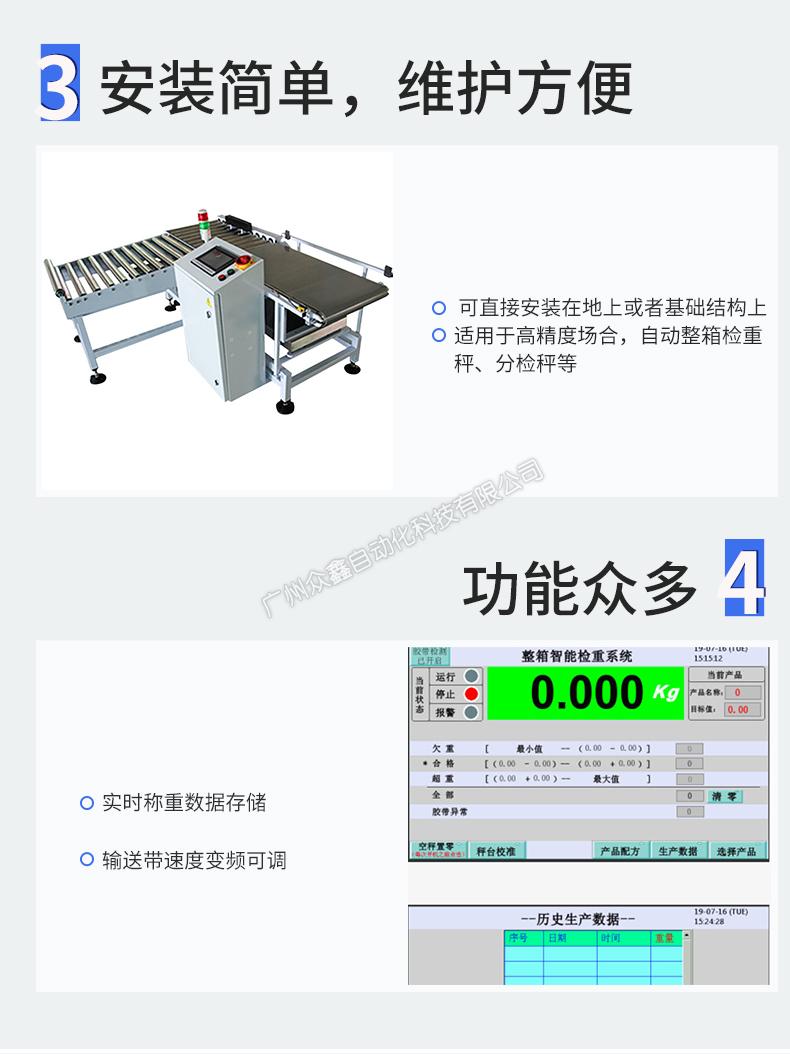 ZH-30系列自動(dòng)整箱檢重秤為高精度動(dòng)態(tài)稱重而設(shè)計(jì),源于先進(jìn)的高速采樣技術(shù)和動(dòng)態(tài)濾波模型、完美的達(dá)到了客戶對(duì)產(chǎn)品高精度的要求。ZH-30系列自動(dòng)整箱檢重秤可以輕松集成到現(xiàn)有生產(chǎn)線,對(duì)每一個(gè)產(chǎn)品進(jìn)行稱重測(cè)量,剔除不合格品,確保產(chǎn)品質(zhì)量100%合格。
