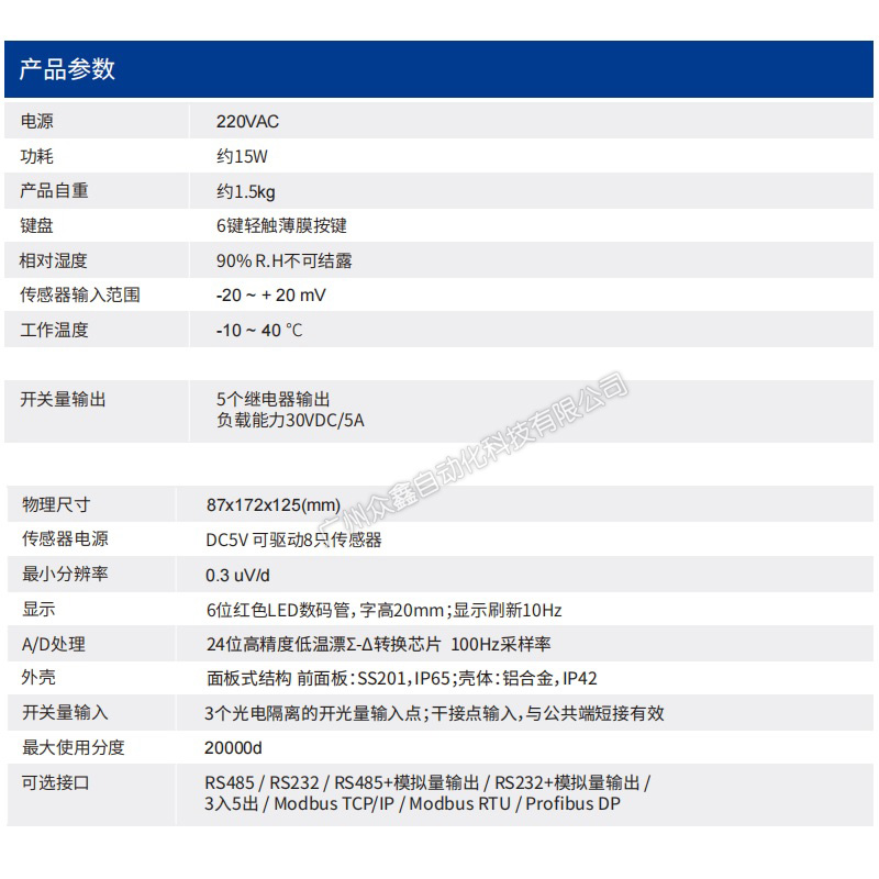 產(chǎn)品類型:稱重顯示控制器