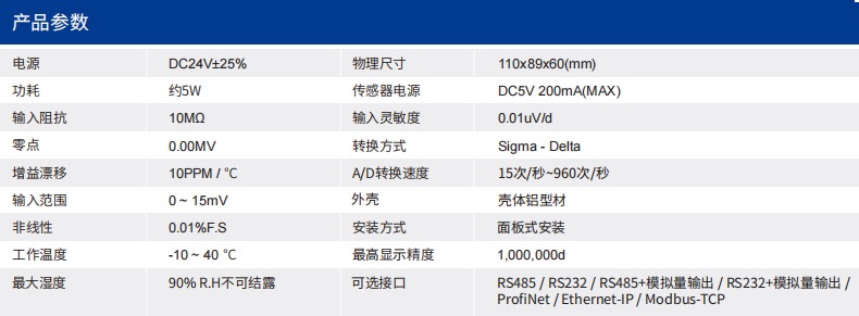 四、WTP21稱重顯示控制器技術(shù)參數(shù)