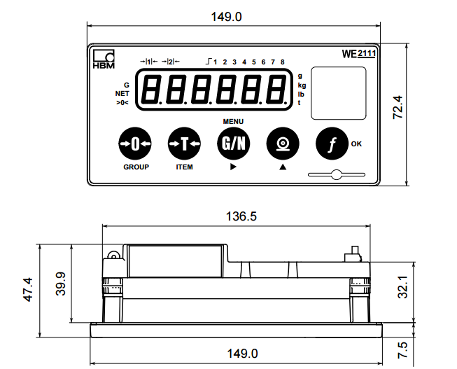 按鍵: 毛重, 凈重, 去皮, 打印, 功能鍵