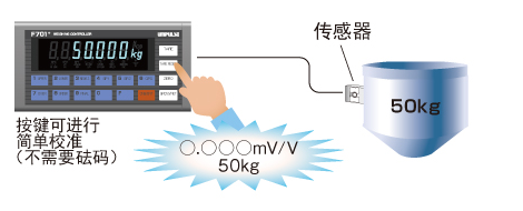 F701+校準(zhǔn)與傳感器的輸出值相對(duì)應(yīng)的重量值,直接按鍵輸入示意圖