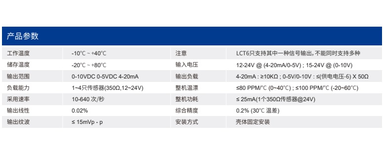 四、LCT6重量變送器產(chǎn)品參數(shù)