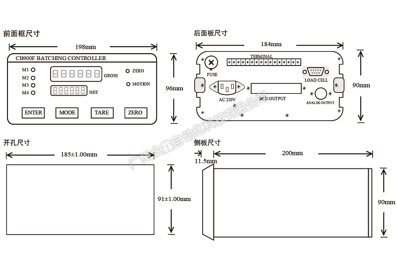 三、CB900F電子稱重儀表產(chǎn)品尺寸