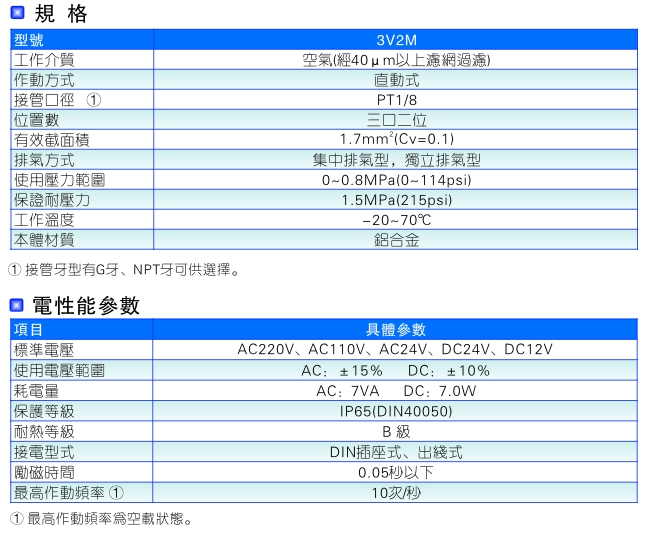 以上是【Airtac電磁閥】3V2M系列電磁閥臺灣Airtac電磁閥的詳細(xì)信息,如果您對【Airtac電磁閥】3V2M系列電磁閥臺灣Airtac電磁閥的價格、貨期、型號、庫存有什么疑問,歡迎撥打