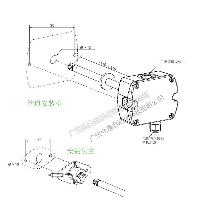 2.探頭設計緊湊,使管道內壓力損失可以忽略不計