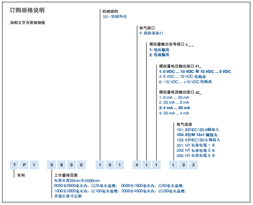 德國NOVOTECHNIK位移傳感器TP1系列所有量程如下: