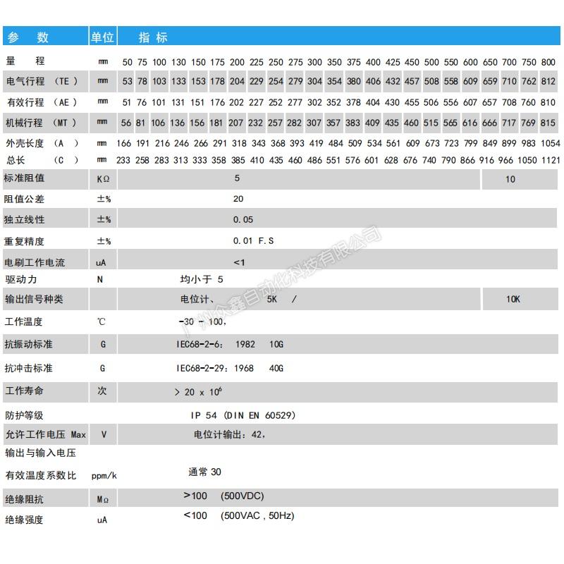 四、LWE位移傳感器產(chǎn)品技術(shù)參數(shù)